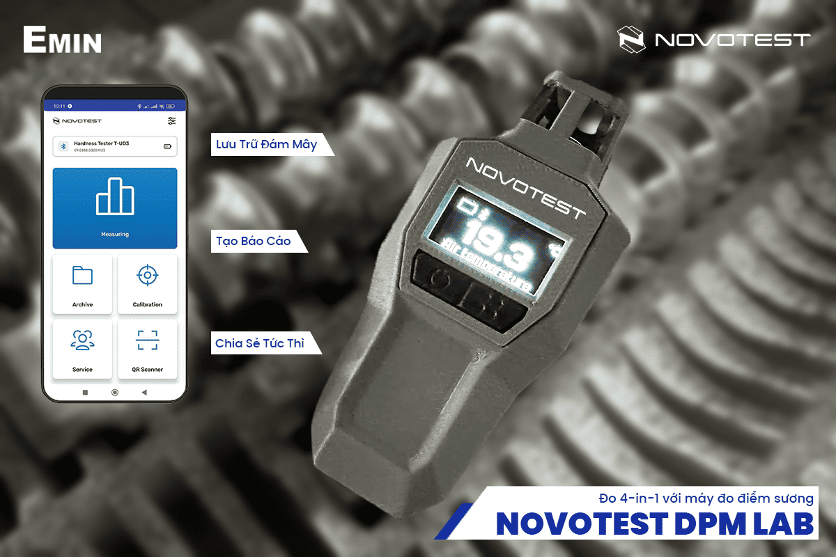 NOVOTEST DPM LAB phát huy tối đa hiệu quả khi kết hợp với NOVOTEST Lab App. Ứng dụng cho phép ghi lại quá trình đo bằng ảnh và video, tạo báo cáo tự động và đồng bộ dữ liệu lên cloud. Mỗi giá trị đo có thể được gắn chú thích dạng giọng nói, hình ảnh hoặc video để mô tả rõ vị trí hoặc tình trạng bề mặt.